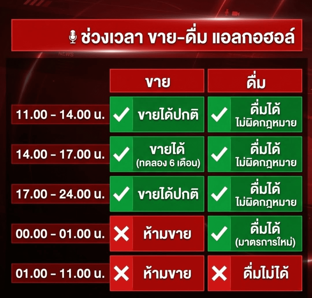 泰國政府先前已通過相關審議,計劃放寬酒類銷售限制,尤其是解除原本的“14:00-17:00禁售時段”,並徵求各方意見達15天之久。業界期待這項措施能在年底假期前落地,以提振消費與觀光經濟。如今,這項政策變更終於正式發布並立即生效。